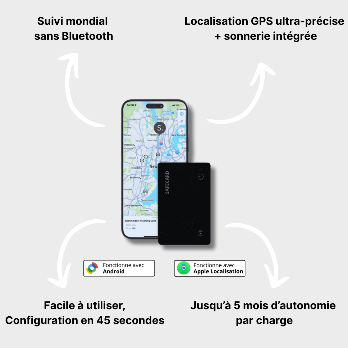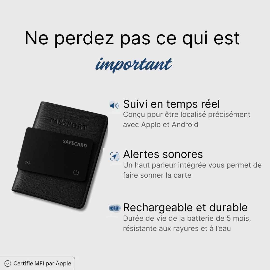 Cette certification garantit une intégration transparente au sein de l'écosystème Apple, vous offrant une technologie de suivi fiable soutenue à la fois par Safecard et Apple.