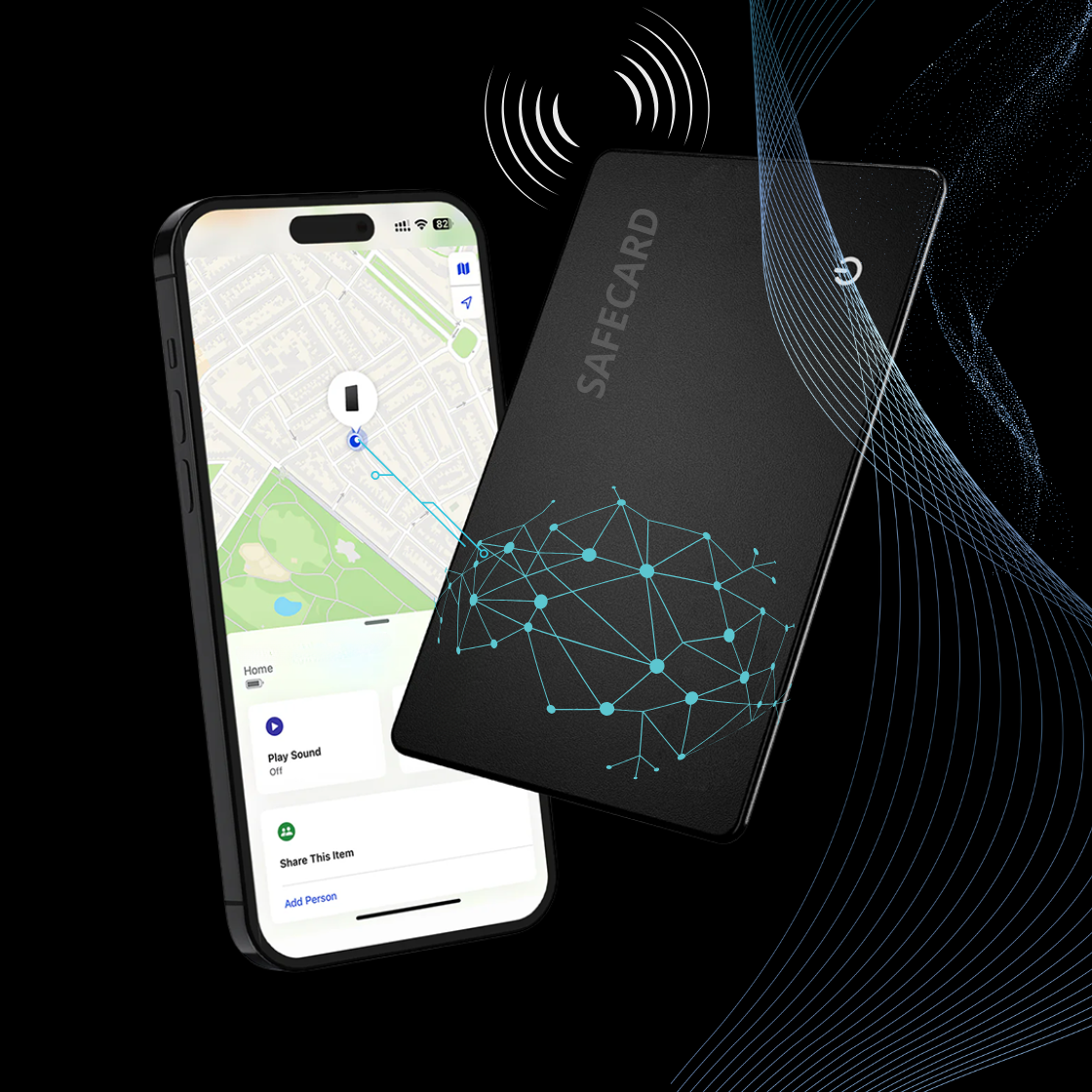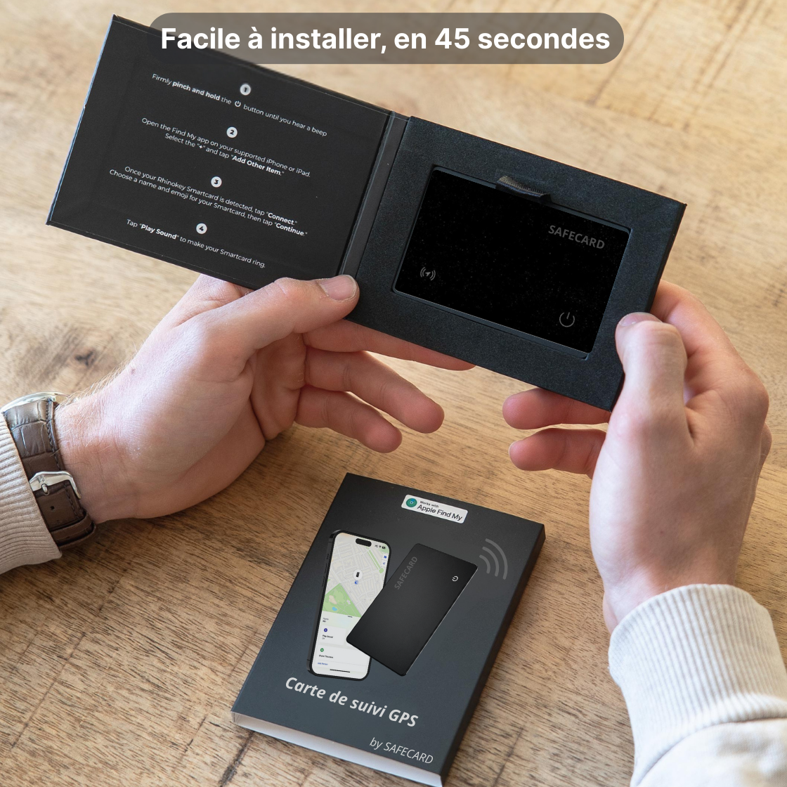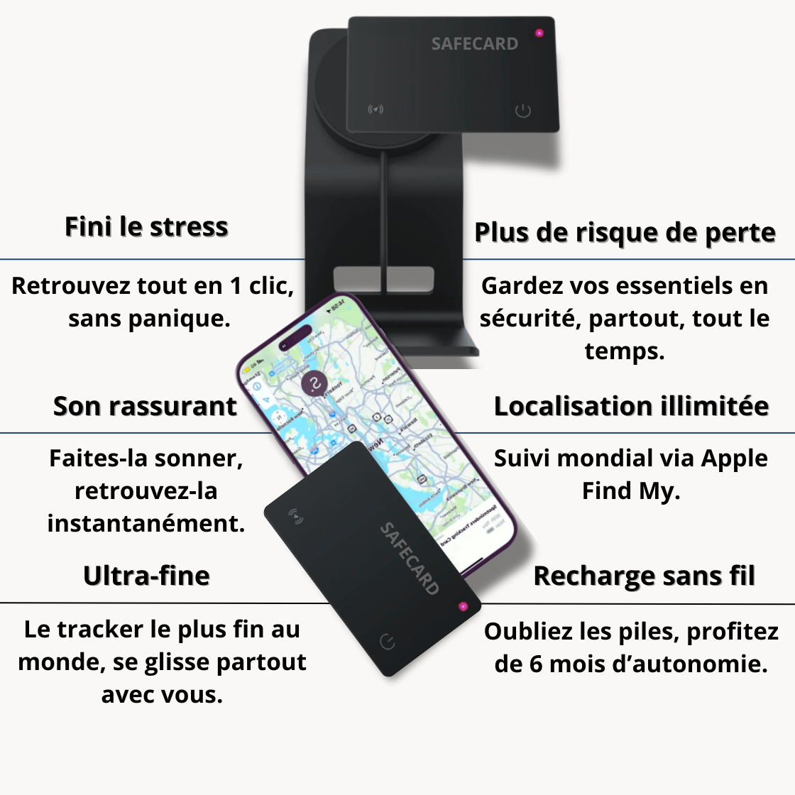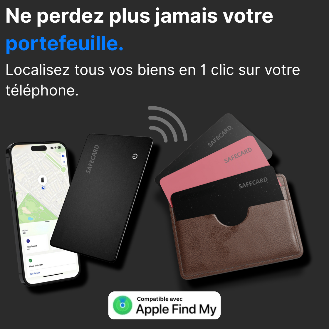 Conçue en Californie, la carte de suivi Safecard s'intègre parfaitement à Apple Find My.